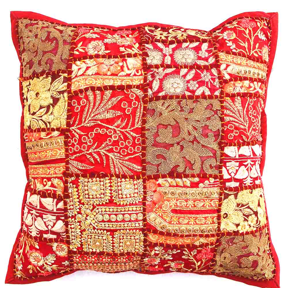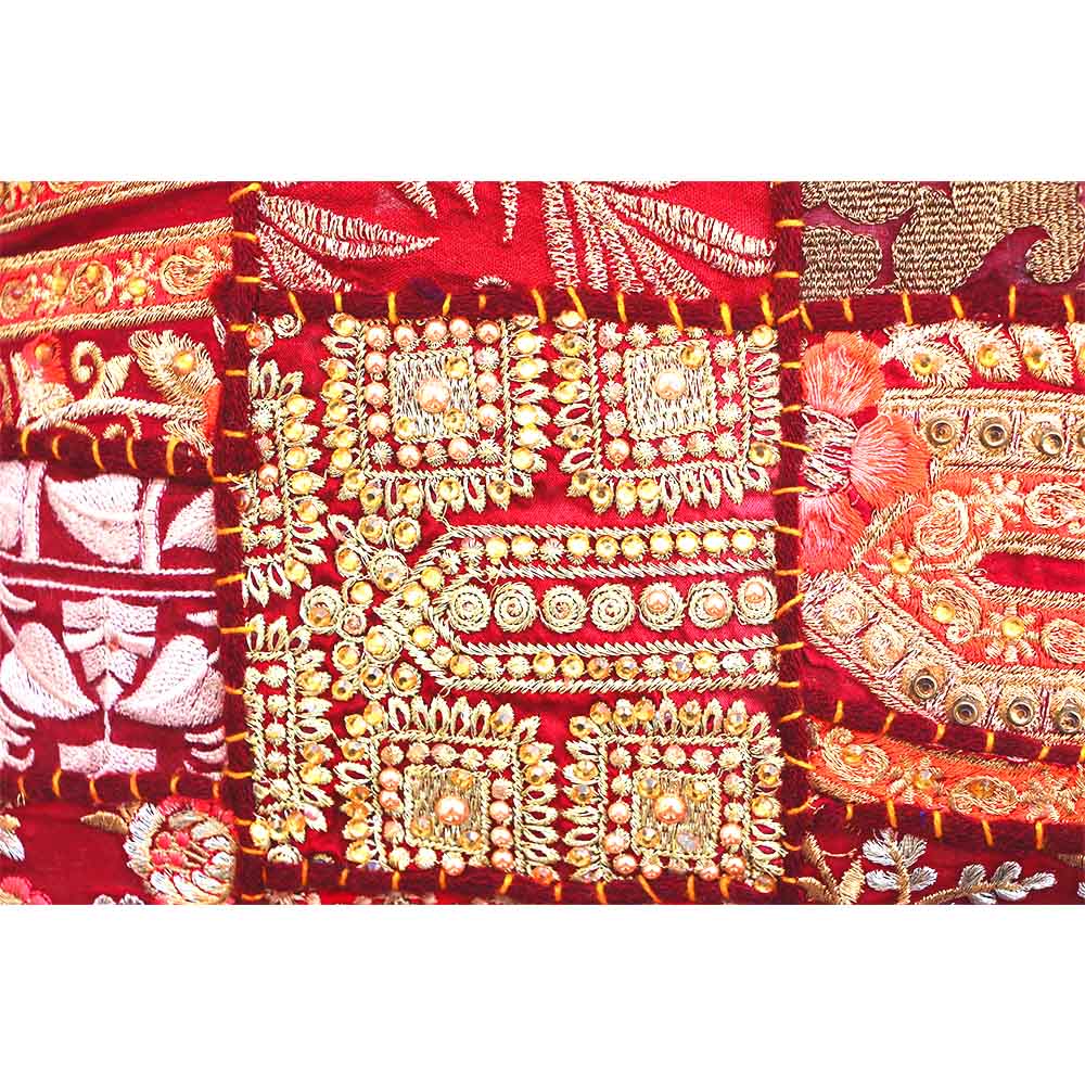 Unlike machine-made covers, this handcrafted embroidered patchwork ensures no two pieces are identical, offering you a one-of-a-kind decor item. The red hue dominates for its auspicious significance in Indian culture, representing energy, passion, and celebration—perfect for festivals or everyday elegance.
