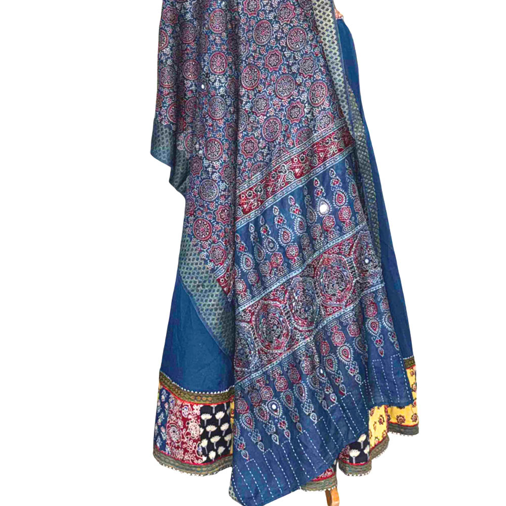 - Craftsmanship: Hand-Block Printed Ajrakh + Integrated Mirror Work