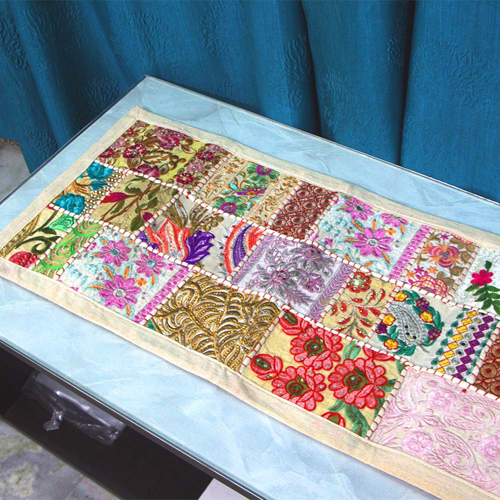 Patchwork Table Runner Vintage Style Rajasthani Hand Embroidered Table Placemat