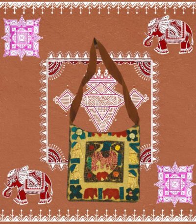 Add a touch of timeless elegance to your ethnic wardrobe with this beautiful handcrafted Bag. Made using traditional technique from Barmer, Rajasthan, this bag showcases intricate geometric and floral motifs in rich natural colors.
