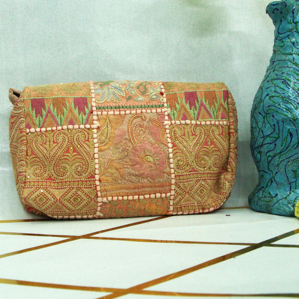 The Handcrafted Terracotta Peach Boho Luxe Bag is more than just an accessory—it’s a statement of heritage, artistry, and sustainable luxury. Made with upcycled vintage fabrics sourced from Rajasthan, this bag carries centuries of textile tradition while fitting seamlessly into modern high-end fashion. Every inch of this bag tells a story of patience, craftsmanship, and cultural depth.